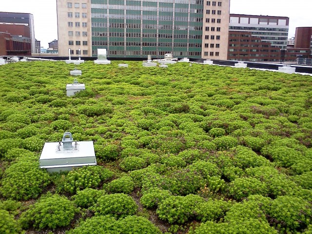 Unlike the Intensive Garden Roof Assembly, the Extensive Garden Roof is not intended for recreational use and is typically chosen for its appearance or to help reduce the "urban heat island" effect and minimize stormwater run-off. Extensive roofs only require a shallow growing media depth, generally as little as 75 mm to 150 (depending on the region), and therefore add little weight to the roof structure below when compared to a standard ballasted PMR roof.