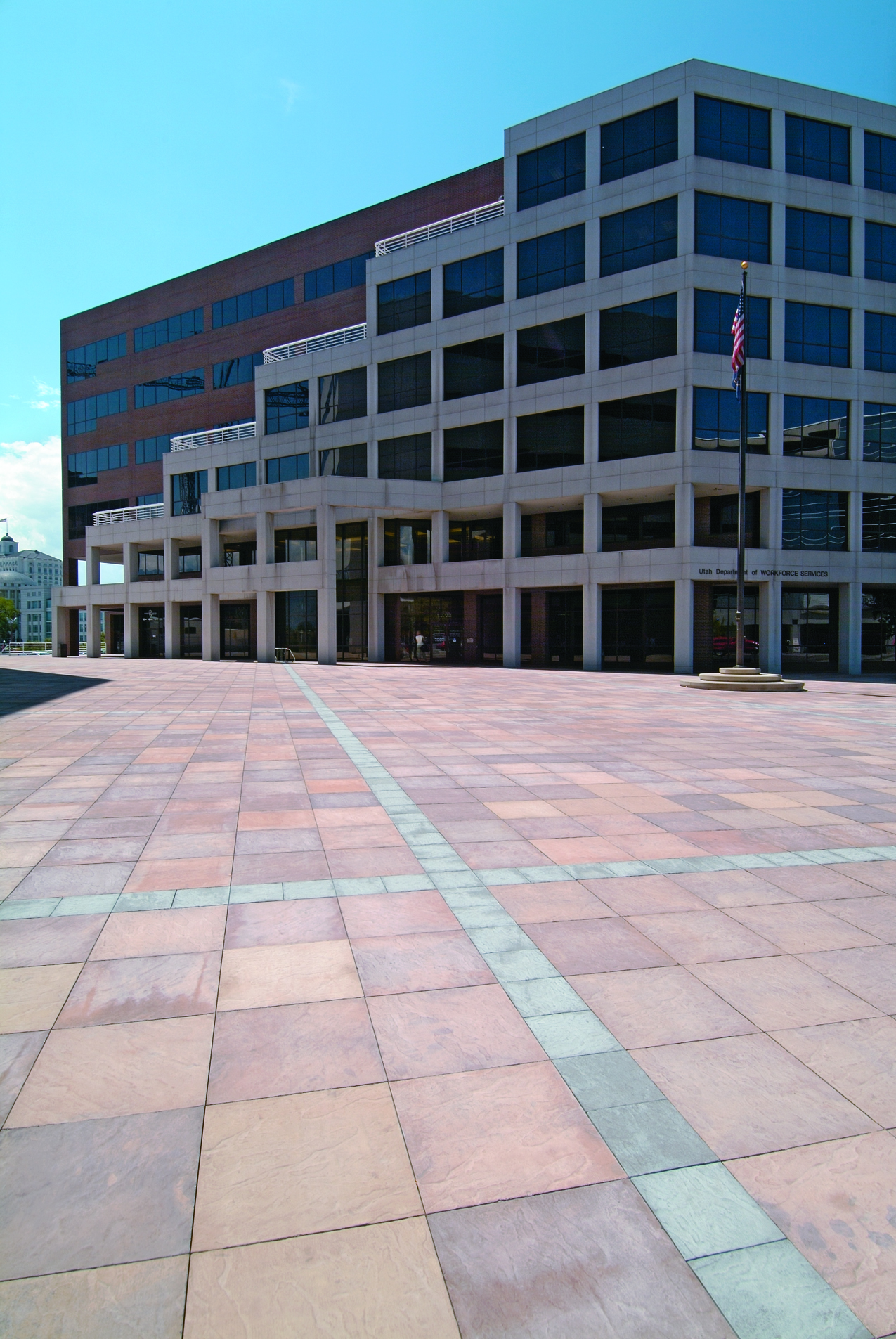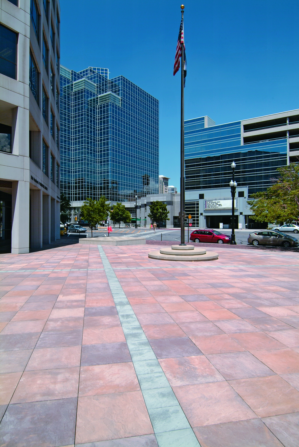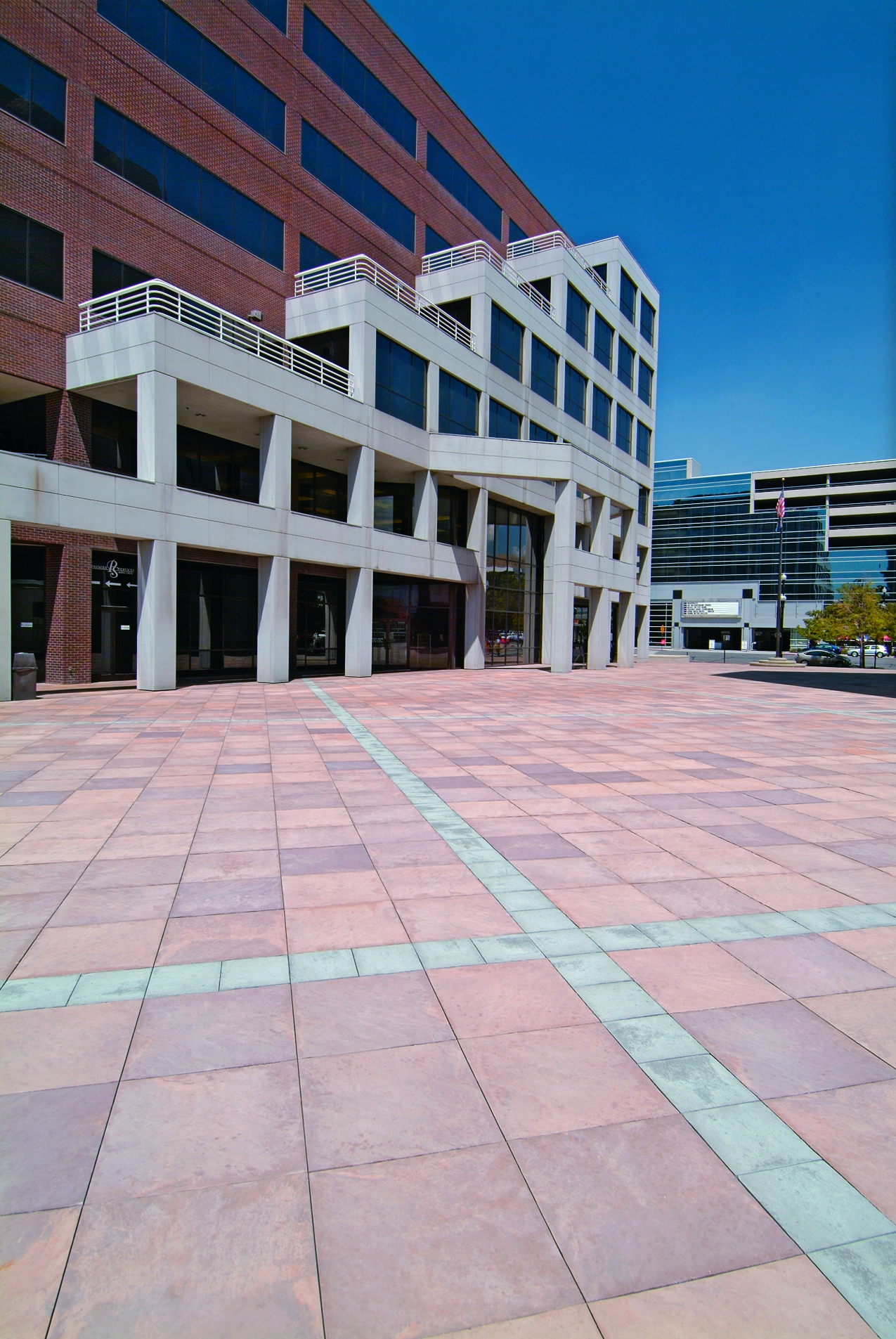 In a 2005 renovation, over 27,000 sqft. of American Hydrotech's Ultimate AssemblyⓇ featuring Hanover Tennessee Flagstone and Limestone Gray Pavers was installed to update the look of the plaza.