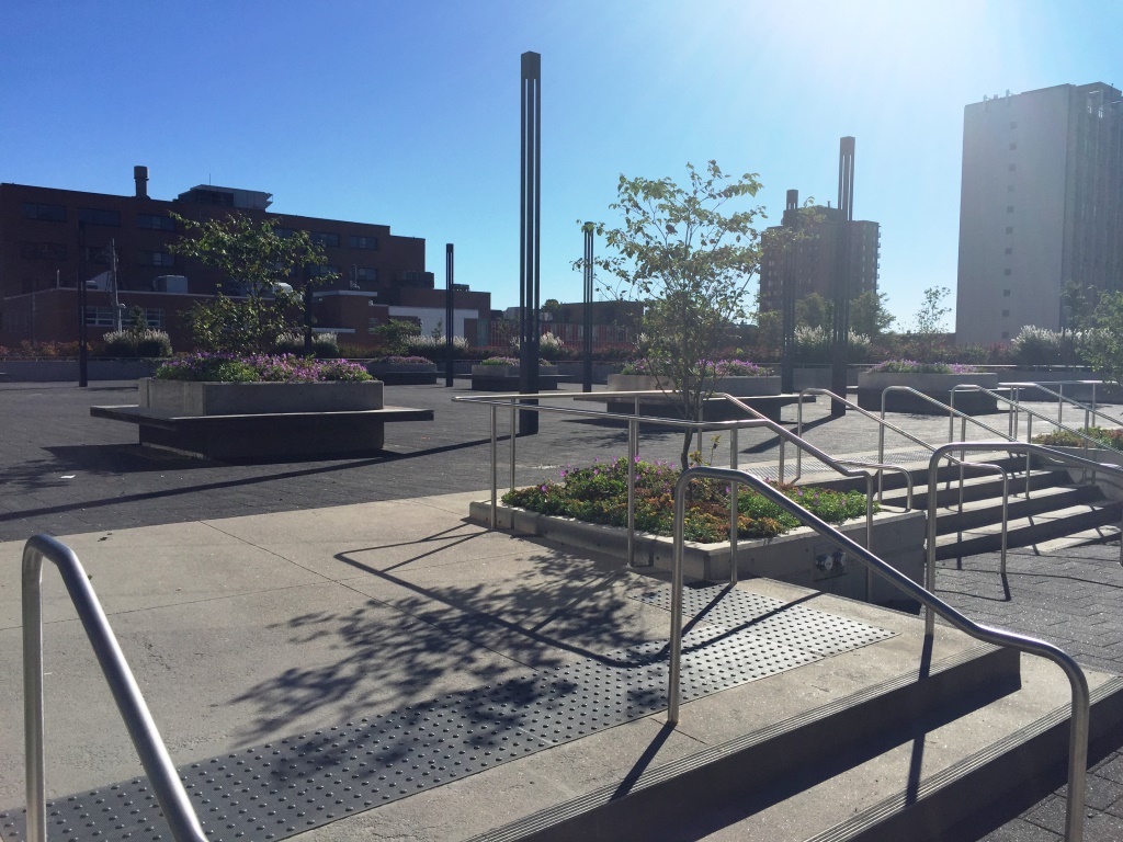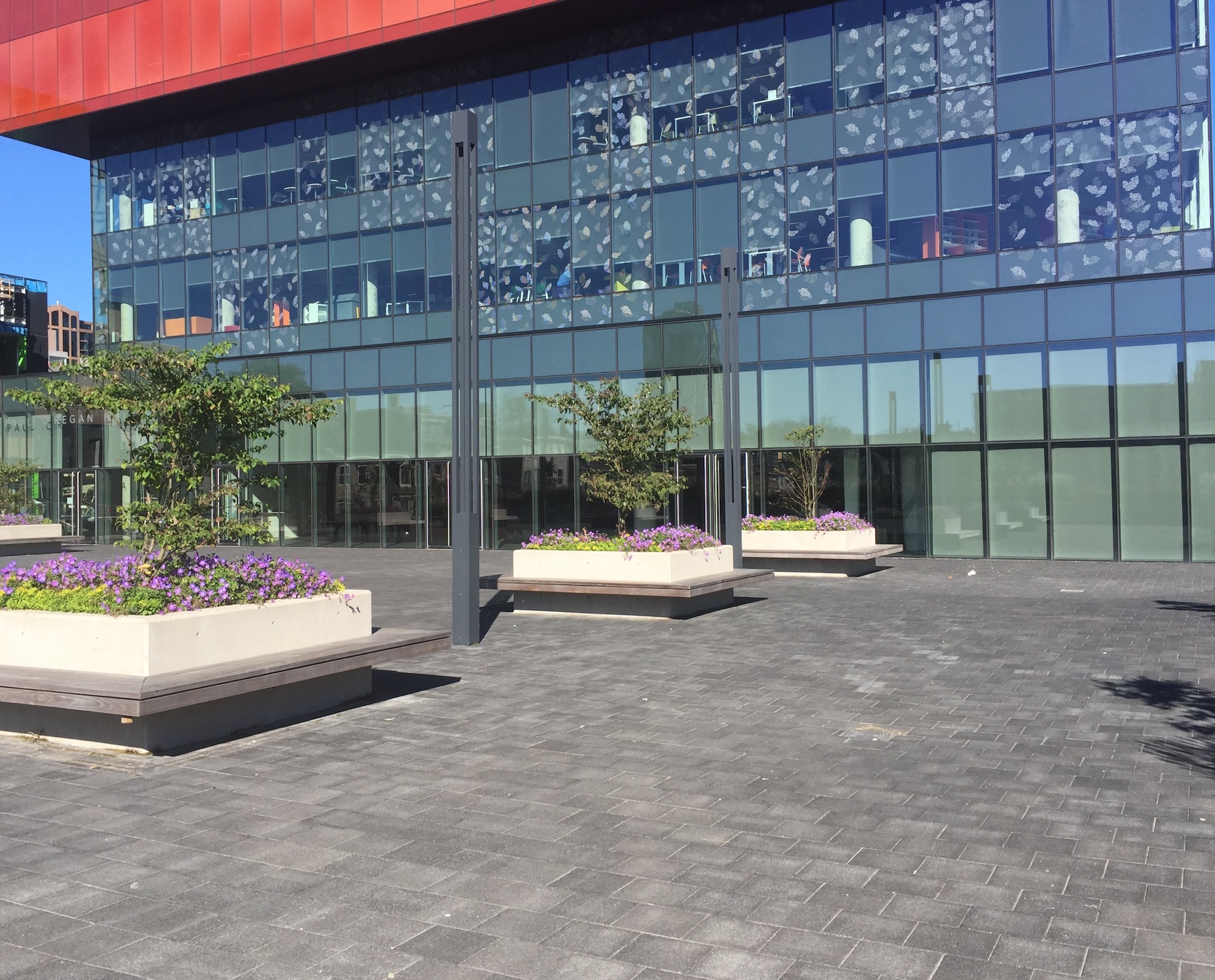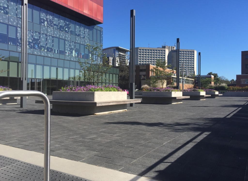 L'imperméabilisation est effecutée avec la MM6125 renforcée pour le podium extérieur situé à l'arrière de la bibliothèque.