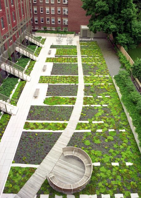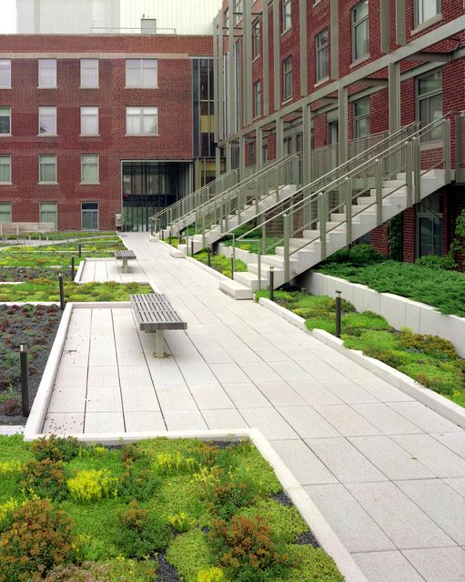 The Garden Roof Assembly from American Hydrotech allowed the rooftop garden to seamlessly blend into the building - creating an extensive green roof system with an average 4-inch-deep soil mix and low-growing hardy plants.