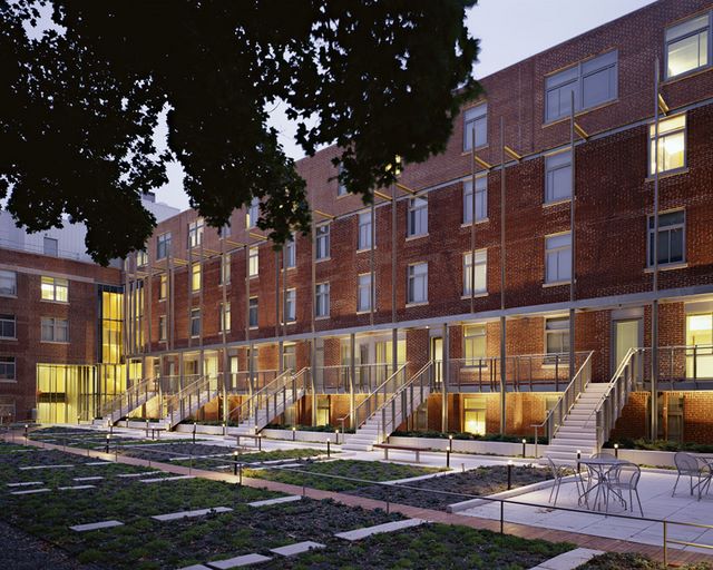 When representatives from Jonathan Levi Architects made their initial site visit to Harvard 29 Garden Street (an 80-year-old, nondescript building they were commissioned to redesign into housing for 143 students), one of the first items identified for change was an unattractive blacktopped roof over a one-story parking garage. Because all of the building's units looked out onto this roof, the architect proposed to capture this space aesthetically.
