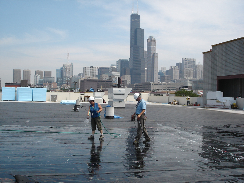 Hydrotech strongly recommends that the waterproofed area or roof be watertested, either by flood testing or electric conductivity testing, prior to installing the subsequent topping materials. This helps to ensure the installation is watertight before any overburden is placed.